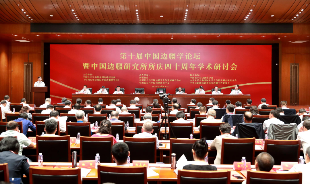 中央宣传部、中央统战部、国家民委等部门相关负责同志,国内相关高校和科研机构的专家学者以及学术期刊代表共200余人参会。此次论坛共收到来自中国藏学研究中心、自然资源部海洋发展战略研究所、内蒙古自治区社会科学院、西藏自治区社会科学院、海南省社会科学院、海南省社会科学界联合会、新疆生产建设兵团党委党校,中央民族大学、辽宁大学、辽宁师范大学、新疆大学、云南大学、云南师范大学、云南民族大学、玉溪师范学院、广西民族大学,中国社会科学院世界宗教研究所、古代史研究所、民族学与人类学研究所、世界经济与政治研究所,新疆大学历史学院、西藏民族大学民族研究院、《社会科学战线》杂志社、《思想战线》编辑部、青海民族大学民族学与社会学学院、西北大学历史学院、陕西师范大学中国西部边疆研究院、四川师范大学历史文化与旅游学院等全国有关高校和科研院所近30家单位发来贺信。中国社会科学院副秘书长马援同志为中国边疆研究所建所40年赠诗一首: